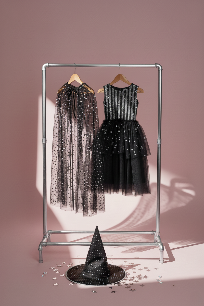 El disfraz de Bruja Piruja con vestido completo, cómodo, bonito… ideal para esas brujis a las que les encanta el brilli brilli.